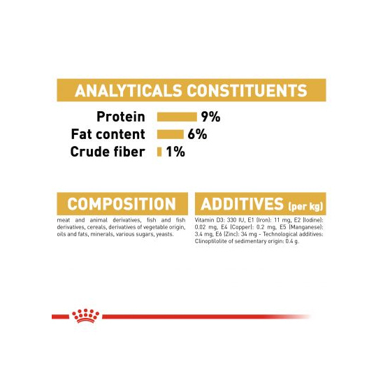 • دارای ترکیبات گوشت و مشتقات حیوانی، غلات، ماهی و مشتقات ماهی، غلات، روغن و چربی، مشتقات گیاهی و مواد معدنی، شکر، مخمرها