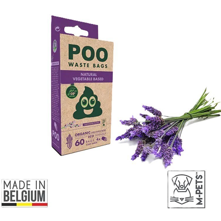 کیسه جمع آوری فضولات M-PETS با رایحه لاوندر ۴ عدد مناسب برای سفرهای شهری و برون شهری دارای ۴ رول با طرح های مختلف تهیه شده از مواد درجه یک با رایحه گل لاوندر
